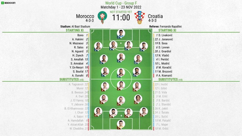 Preview and stats followed by live commentary video highlights and match report. Morocco Croatia live score and video online live stream starts on 23 Nov 2022 at 1000 UTC time at Al Bayt Stadium stadium Al Khor city Qatar in World Cup Group F World. Juranovic Lovren Gvardiol Sosa.